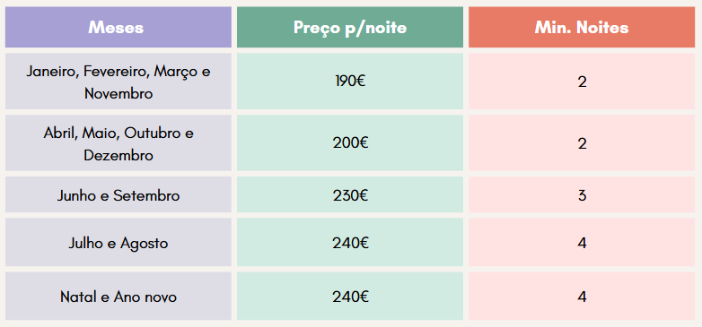 🛏 Lotação do Alojamento Os valores apresentados referem-se a uma lotação máxima de 4 adultos e 2 crianças.